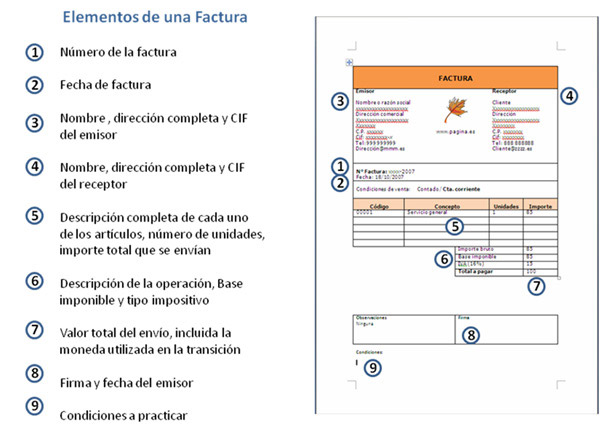 características de una factura